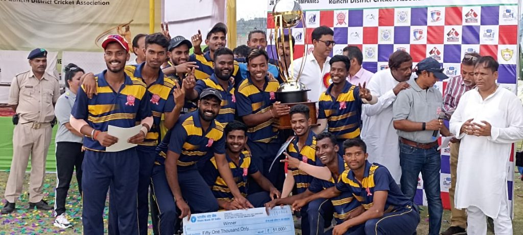 इन्हें मिले पुरस्कार बेस्ट बैट्समैन अनमोल राज ,बेस्ट बॉलर सुशांत ,बेस्ट फील्डर हर्ष राणा ,बेस्ट विकेट कीपर विजय जेना ,मैन ऑफ द सीरीज कुमार प्रभात ,बेस्ट डिसिप्लिन टीम जेके क्रिकेट एकेडमी, बेस्ट पप्रॉमिसिंग प्लेयर राम रोशन फाइनल मैच के मैन ऑफ द मैच कुमार प्रभात। इससे पूर्व सुबह मैच का उद्घाटन पूर्व रणजी खिलाड़ी सत्य प्रकाश,फूलचंद तिर्की और जे के ग्रुप के चेयरमैन जितेंद्र सिंह ने संयुक्त रूप से किया।