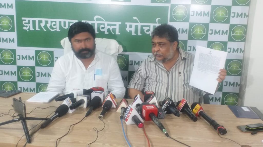 जेएमएम के सांसद विजय हांसदा और केंद्रीय समिति के सदस्य सुप्रियो भट्टाचार्य ने शनिवार को रांची में ईडी की ओर से शुक्रवार को पहली बार आधिकारिक रूप से यह जानकारी दी गयी कि पंकज मिश्रा और उनके सहयोगियांे के बैंक खातों से 11 करोड़ से अधिक की राशि बरामद की गयी, तो उन्हें ईडी को यह भी साफ करना चाहिए कि पंकज मिश्रा के ठिकाने से कितनी राशि की बरामद की गयी। उन्होंने कहा कि जिस तरह से ईडी की ओर से सिर्फ एक ही नाम पंकज मिश्रा का जिक्र किया गया है, उससे साफ होता है कि मुख्यमंत्री हेमंत सोरेन की छवि को खराब करने की कोशिश की जा रही है।