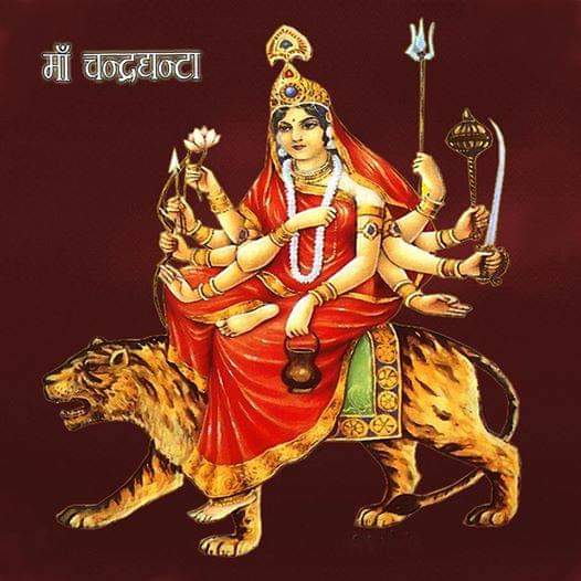 सिंह पर सवार इस देवी की मुद्रा युद्ध के लिए उद्धत रहने की है। इसके घण्टे-सी भयानक ध्वनि से अत्याचारी दानव-दैत्य और राक्षस कांपते रहते हैं। नवरात्रि में तीसरे दिन इसी देवी की पूजा का महत्व है। इस देवी की कृपा से साधक को अलौकिक वस्तुओं के दर्शन होते हैं। दिव्य सुगंधियों का अनुभव होता है और कई तरह की ध्वनियां सुनाईं देने लगती हैं। इन क्षणों में साधक को बहुत सावधान रहना चाहिए।